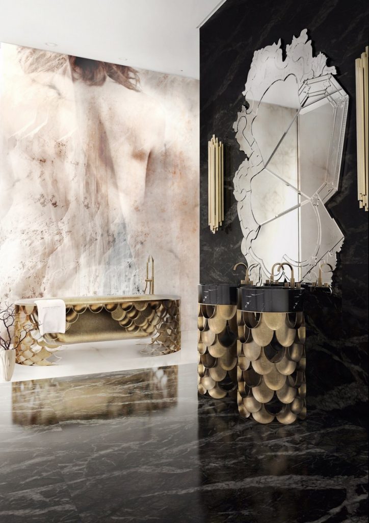 In the Summer, bathrooms should have a fresh and bright touch to them, just like the master bathroom suite above depicted that features sophisticated designs from Maison Valentina and Boca do Lobo, including the Symphony bathtub, the Metropolitan washbasin, and the Ring Rectangular mirror.